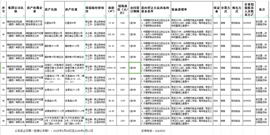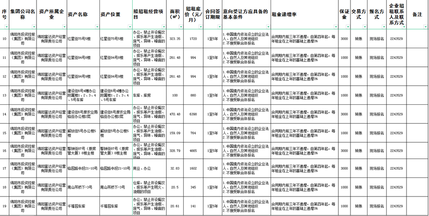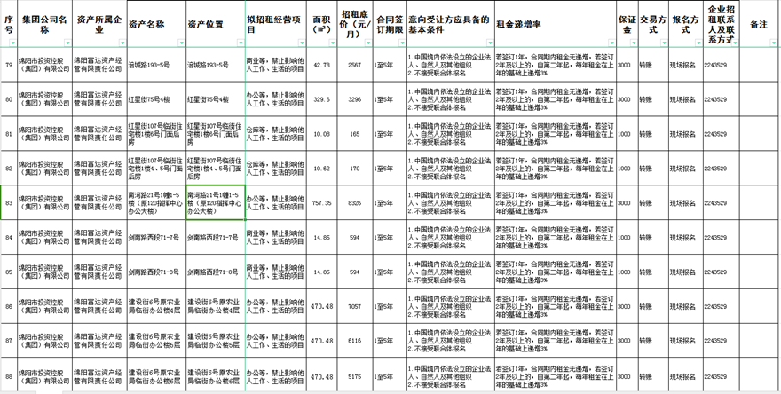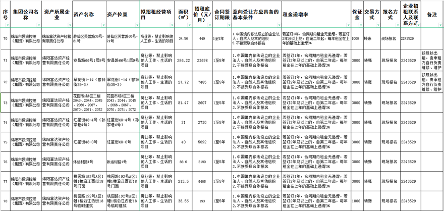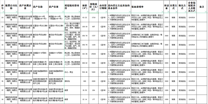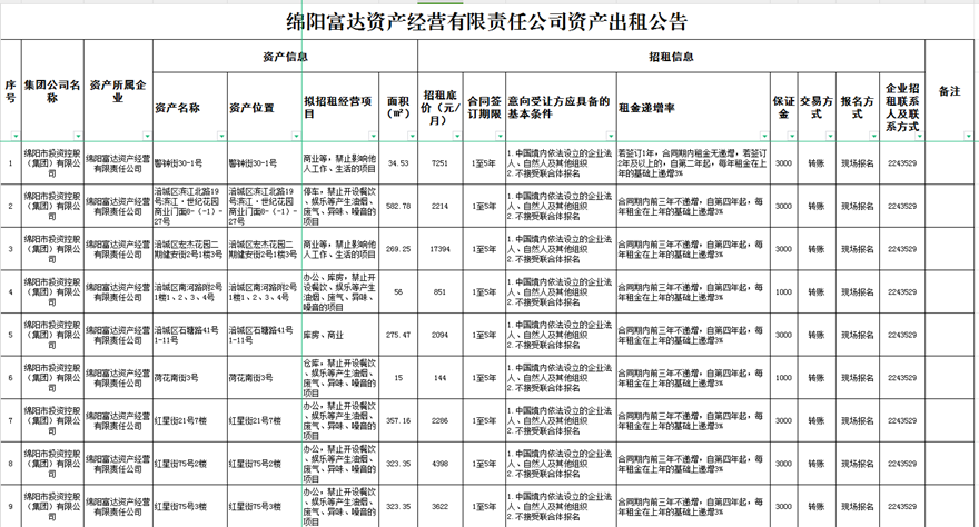 绵阳富达资产经营有限责任公司资产出租公告