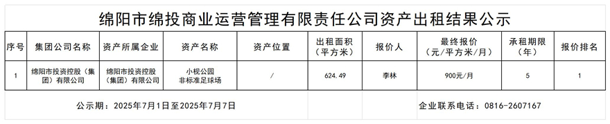 绵阳市15vip太阳集团官网商业运营管理有限责任公司资产出租结果公示
