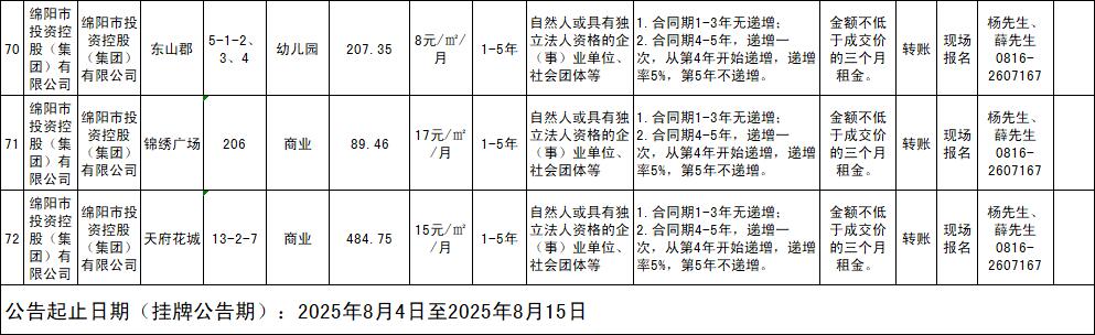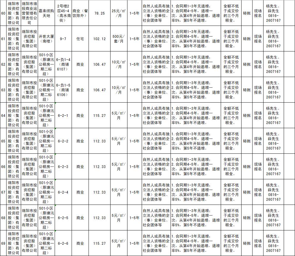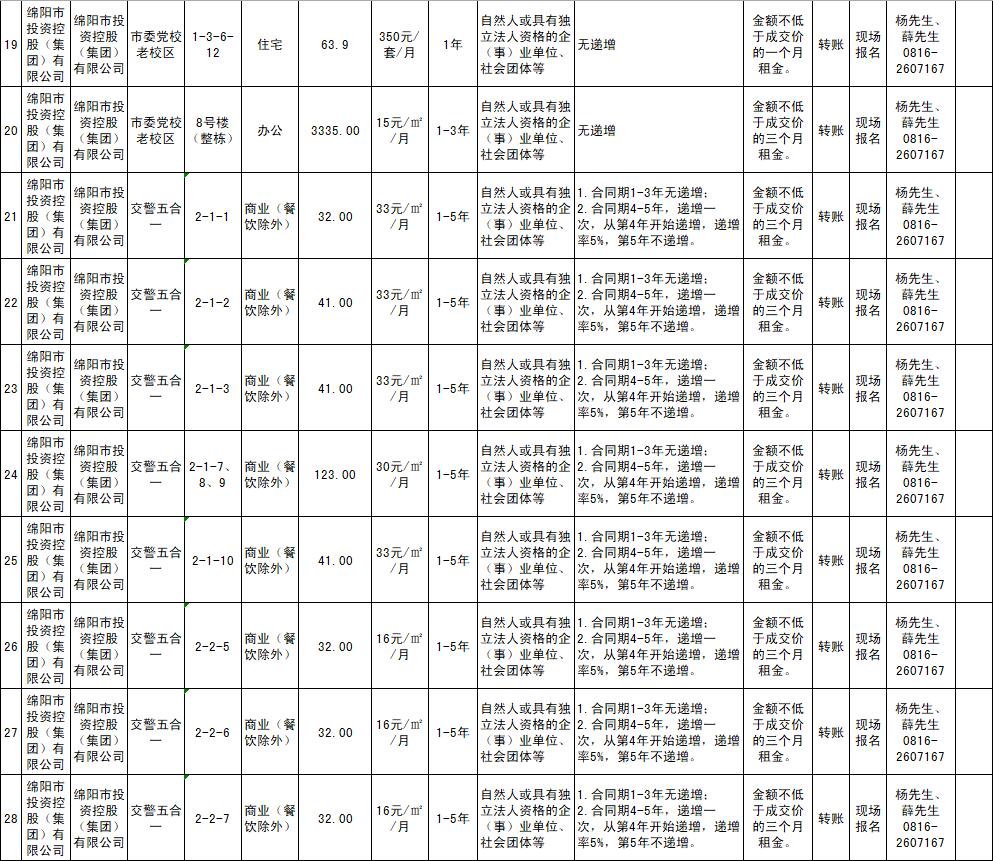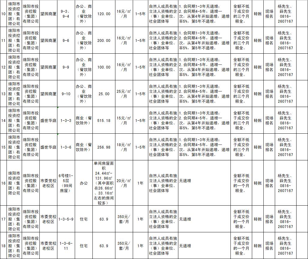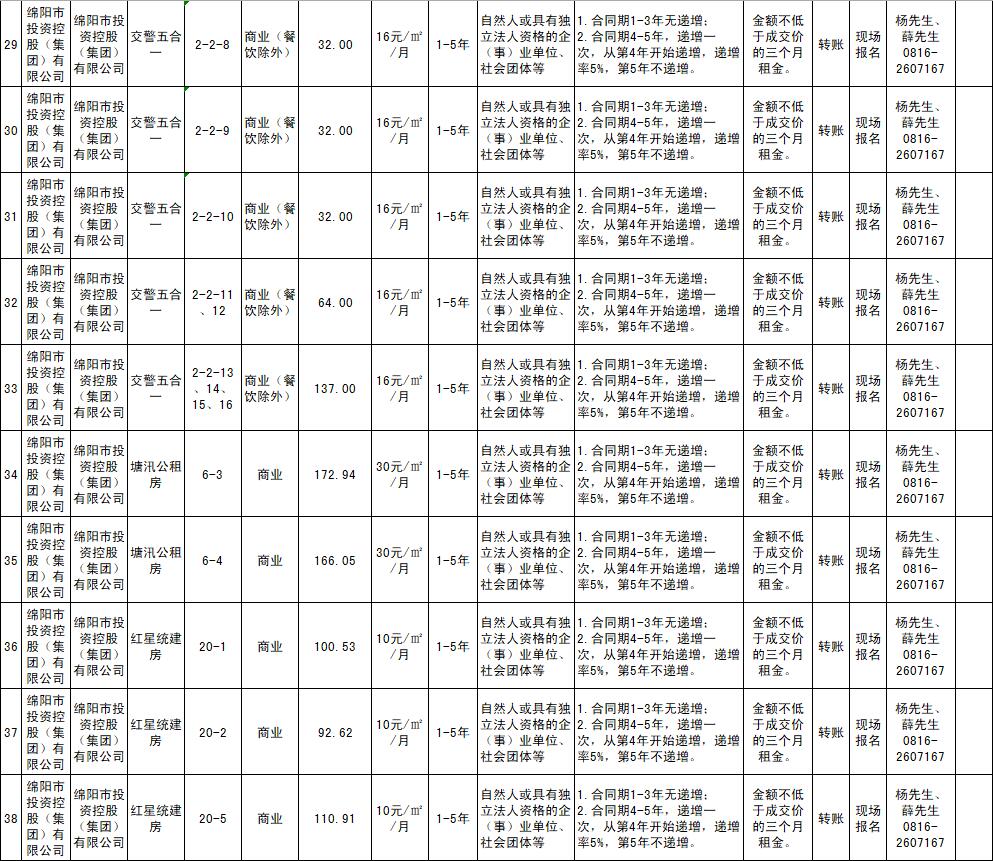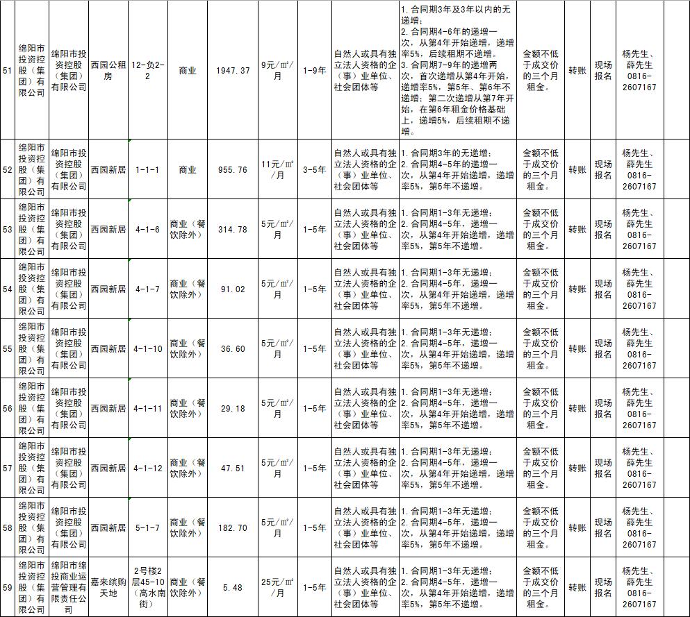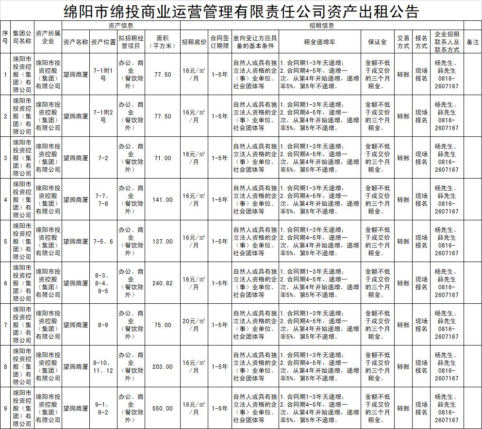绵阳市15vip太阳集团官网商业运营管理有限责任公司资产出租公告