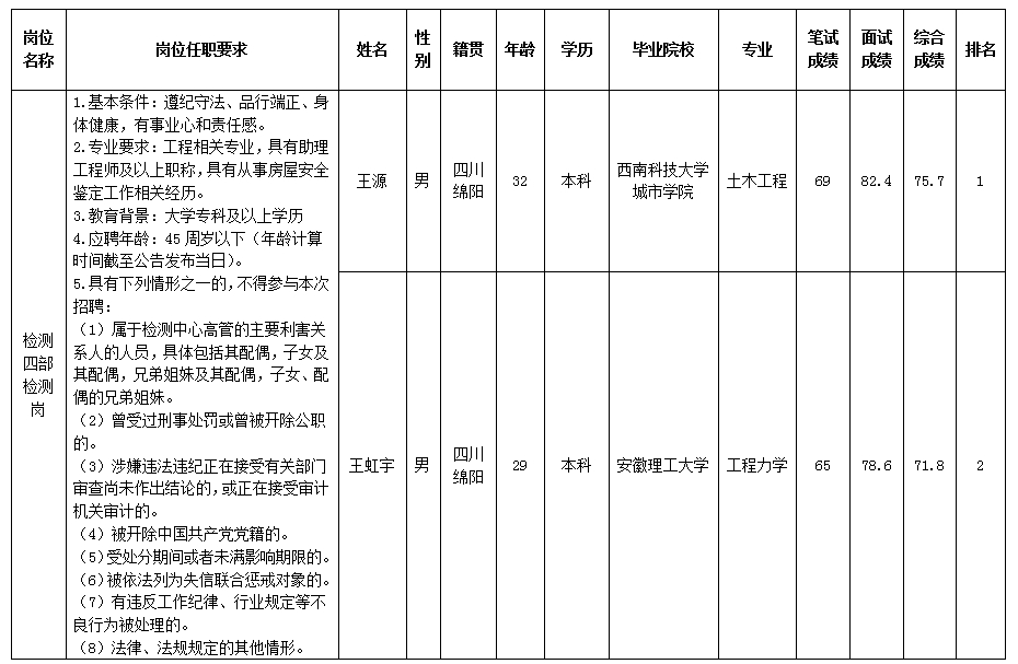 根据绵阳市建设工程质量检测中心有限责任公司发布的招聘公告及招聘相关规定,现将笔试、面试成绩予以公示。