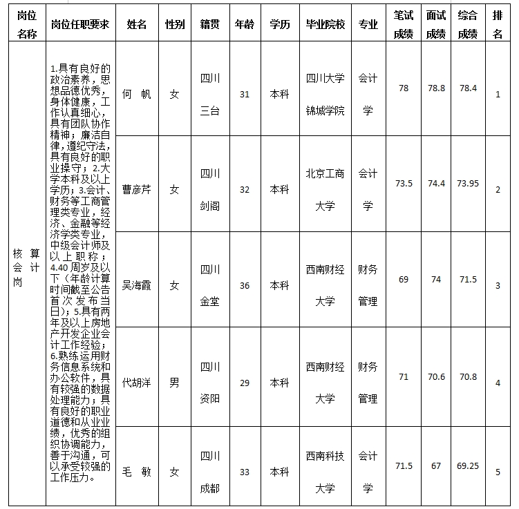 根据绵阳市嘉远瑞华房地产开发有限公司发布的招聘公告及招聘相关规定,经笔试、面试等程序,现将笔试、面试成绩予以公示。