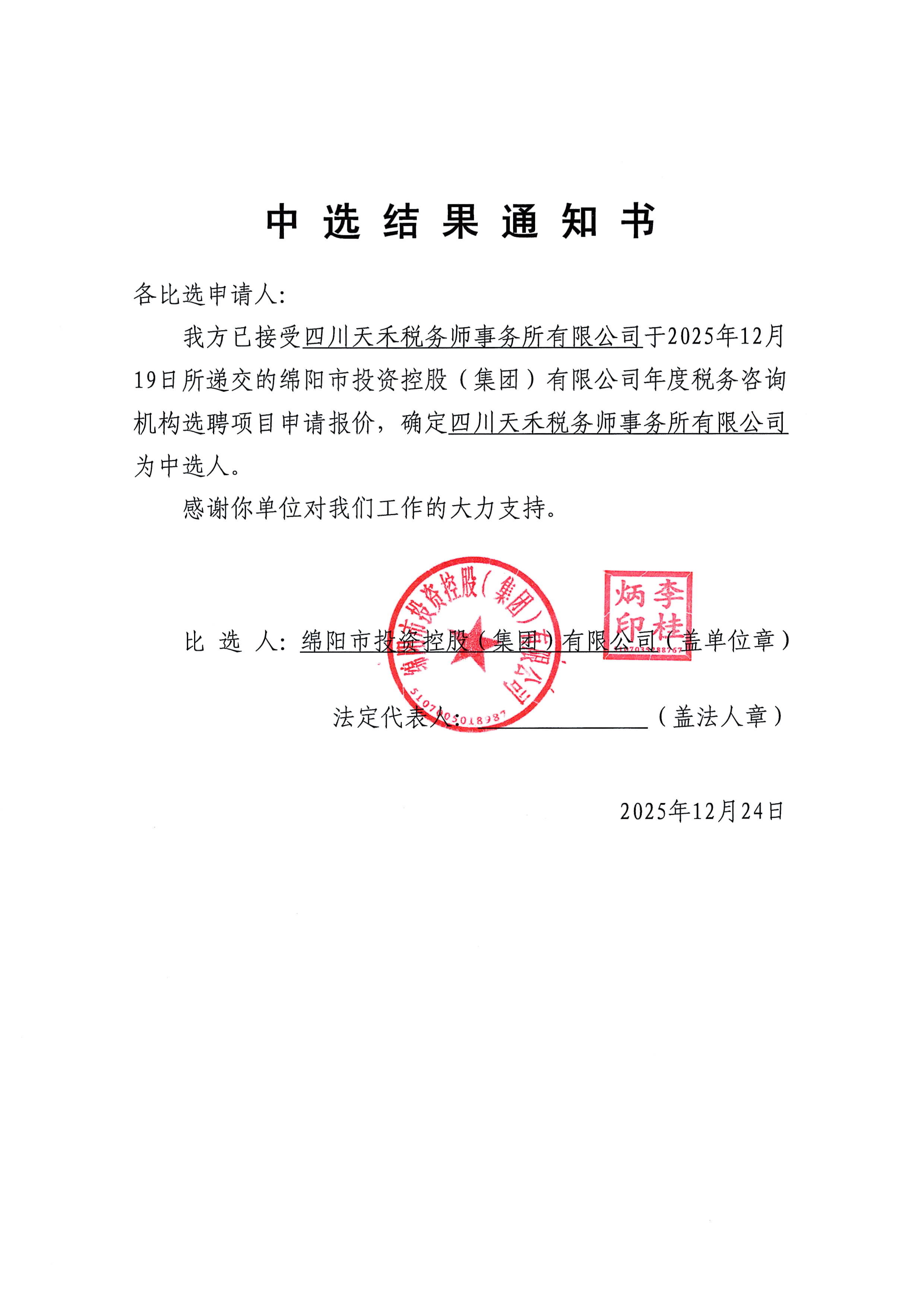 15vip太阳集团官网年度税务咨询机构选聘项目中选结果通知