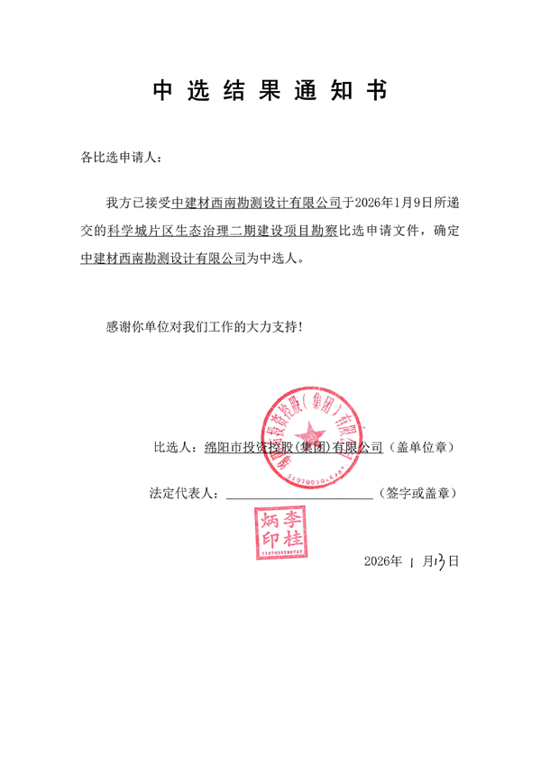 科学城片区生态治理二期建设项目勘察中选结果通知