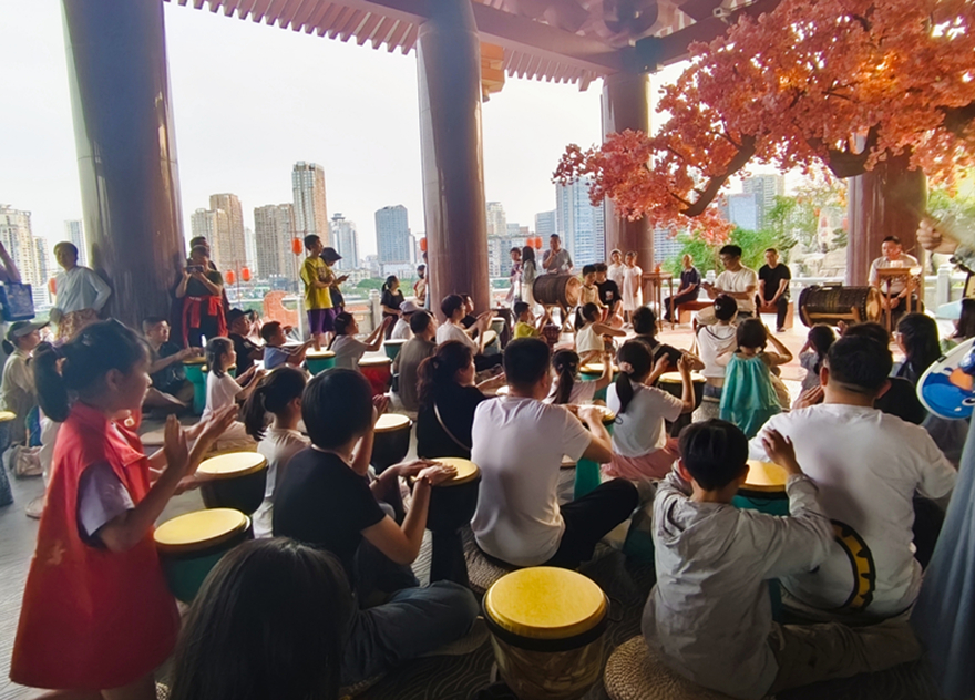 “五一”期间,景区在龟山打造“非遗工坊”,推出“漆扇制作—草编体验—诗词题写—场景打卡”一体化体验链,可参与、可带走、可传播,突破“静态展示”传统模式,通过“活态传承+互动赋能”推动非遗文化创造性转化,每天吸引逾千人次游客参与。